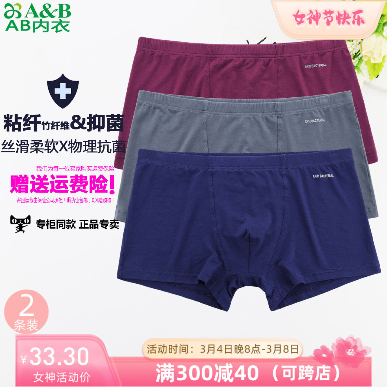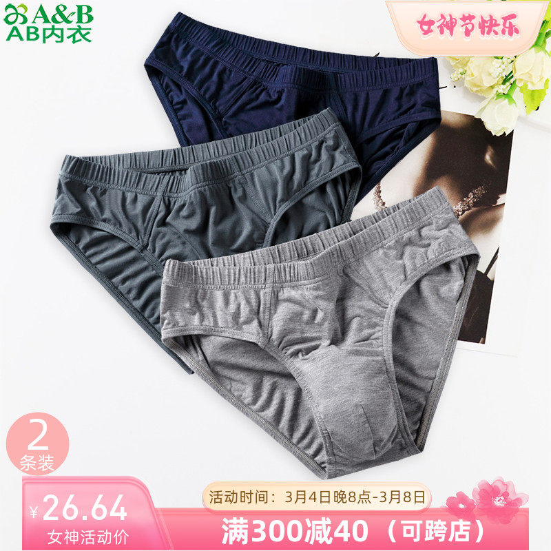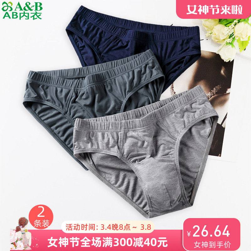 2条装 AB内衣男士竹纤维弹力中腰三角裤头大码纯色青少年短裤Y815