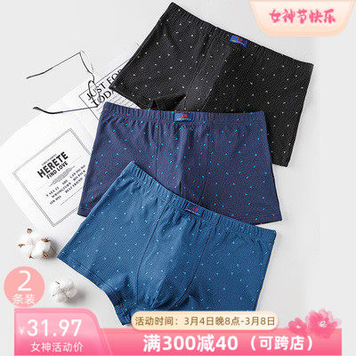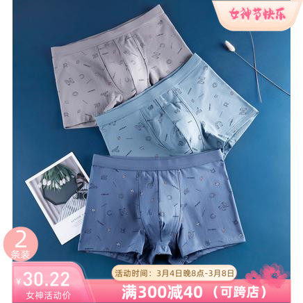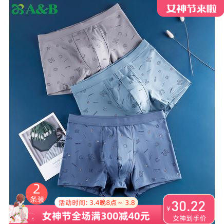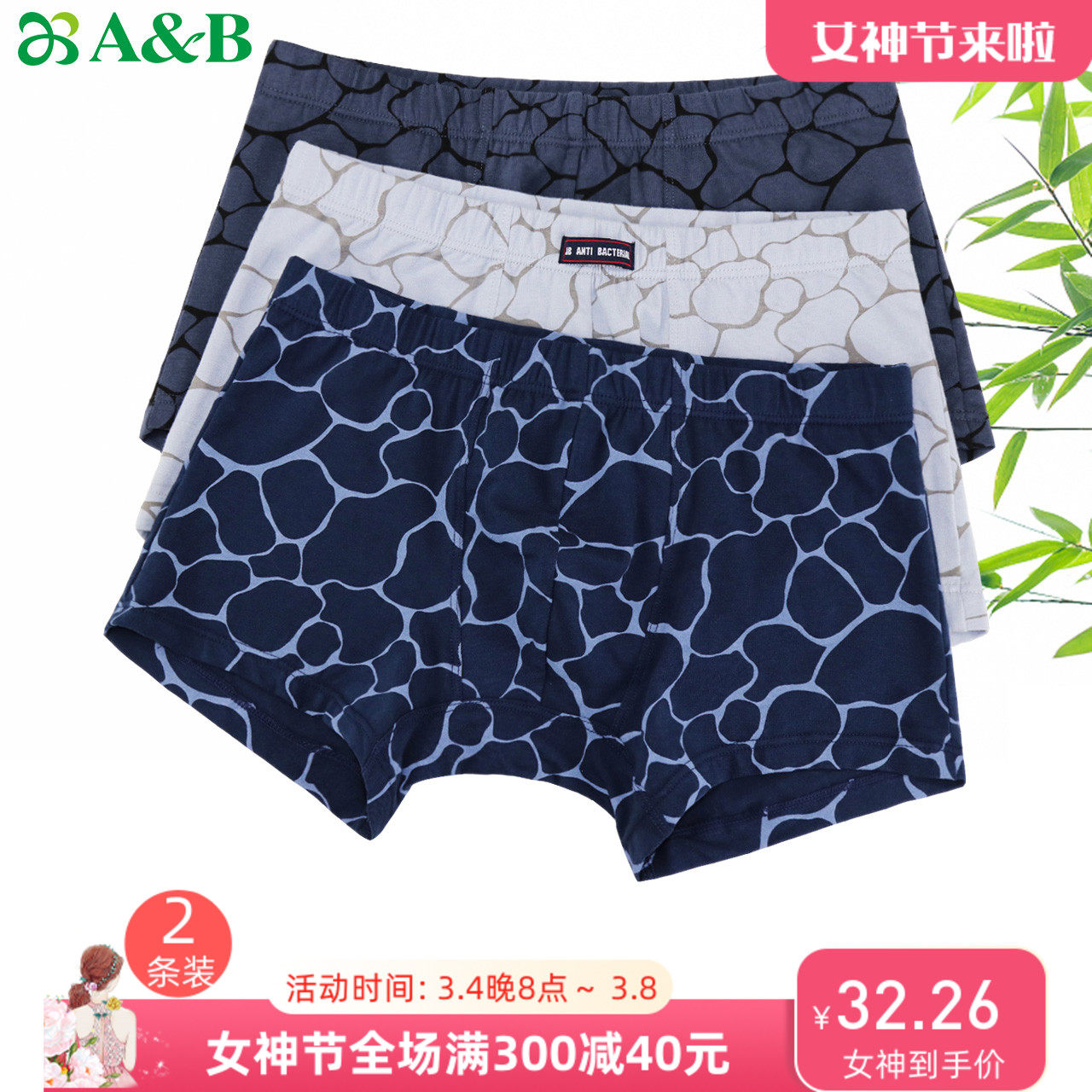 ab内衣【2条装】男士平脚裤薄款弹力棉印花抗菌中腰男生短裤B323