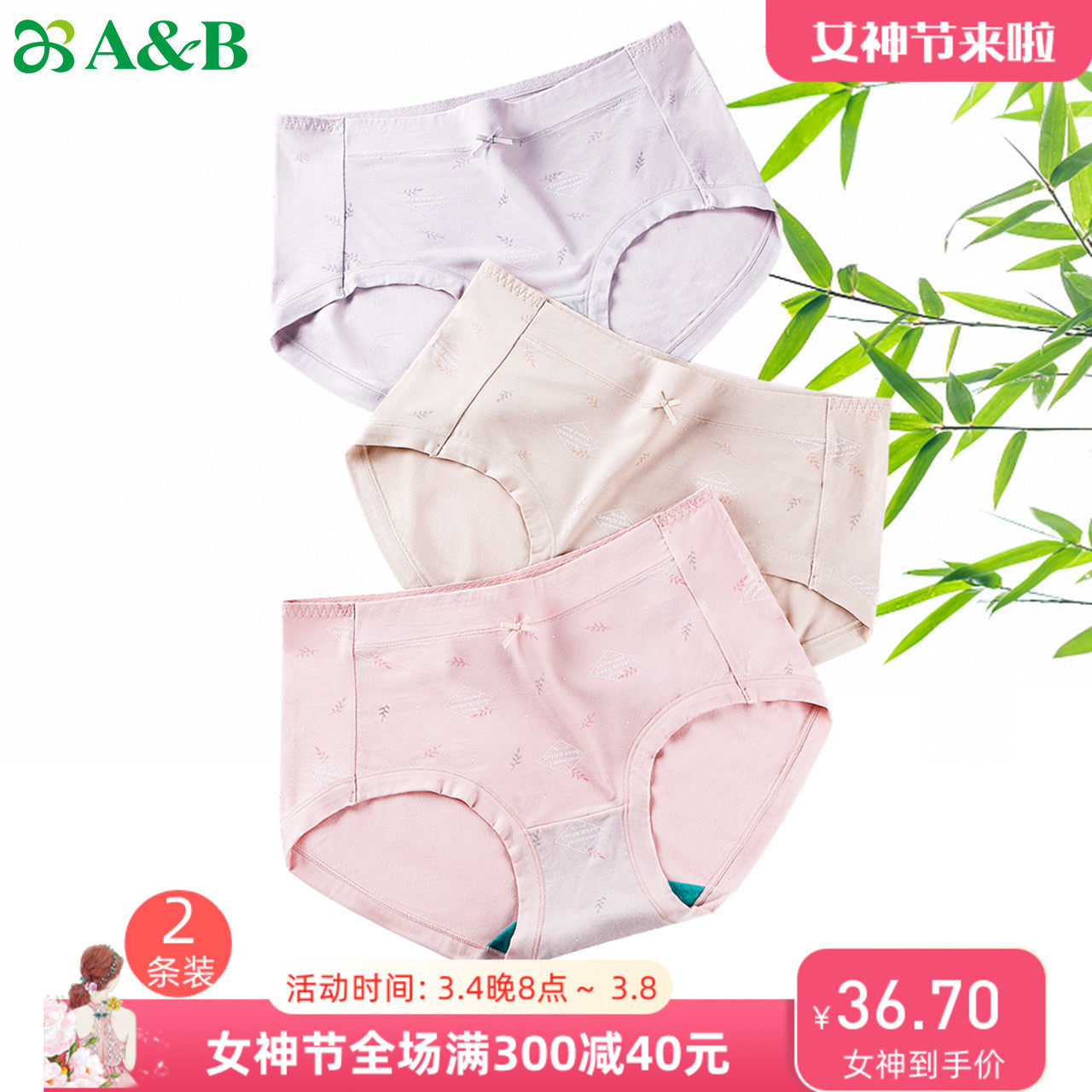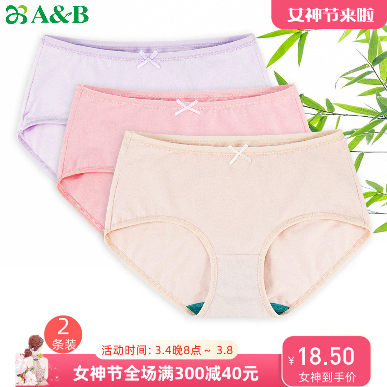 A&Bab内衣【2条装】女平脚内裤弹力纯棉裆中腰女士平角短裤D835