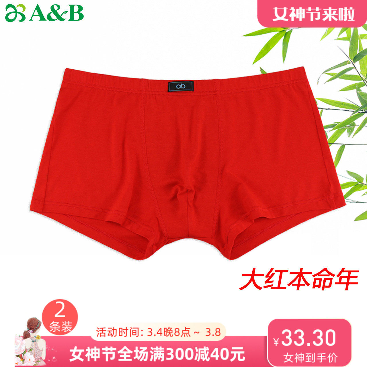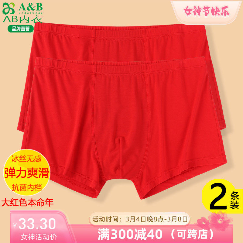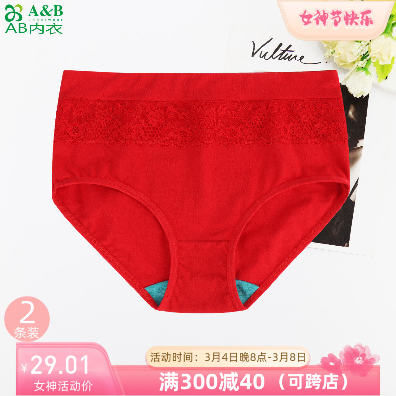 ab内衣2条装本命年大红女士平脚内裤中腰海藻抗菌平角短裤L620