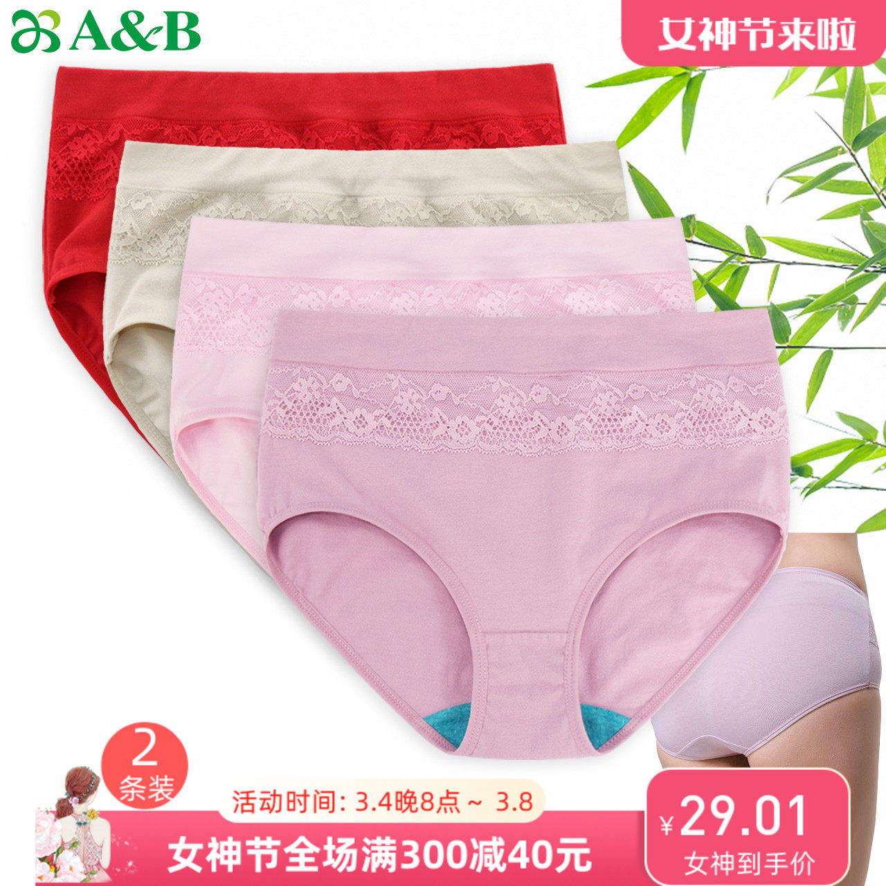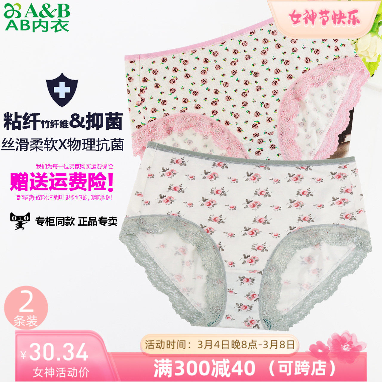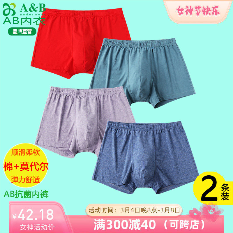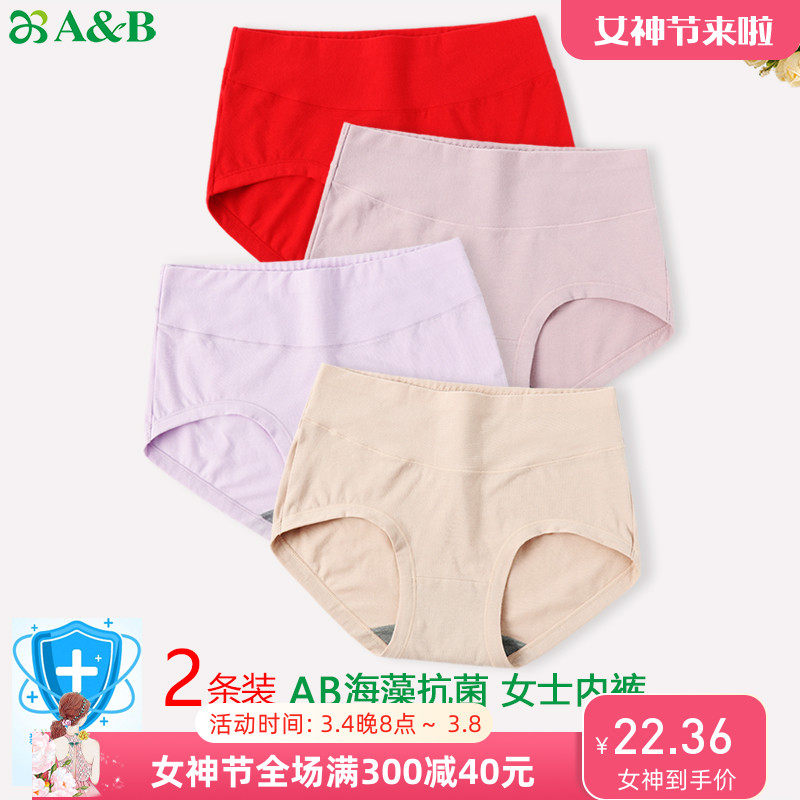 ab内衣2条装本命年大红女士平脚内裤中腰海藻抗菌平角短裤L620