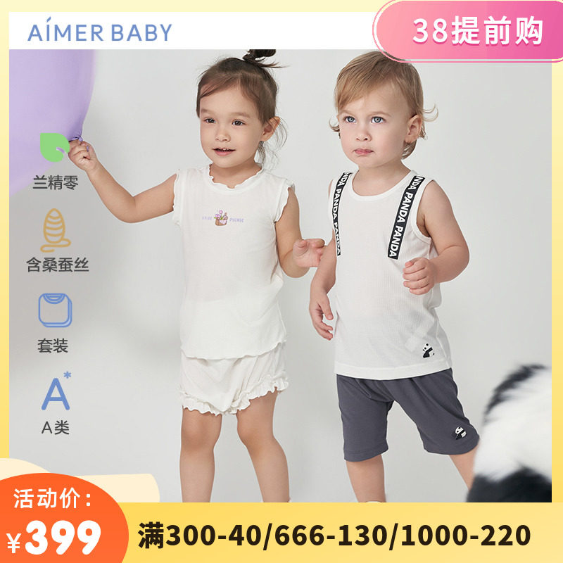 爱慕婴儿绅士宝贝/铃兰花开男婴幼背心短裤套装AB243B371