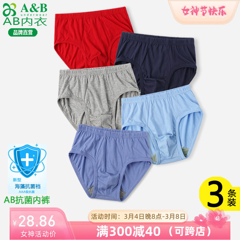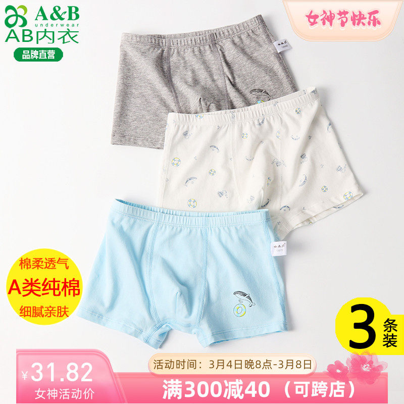 4条装 AB内衣纯棉男童短裤全棉中大童青少年学生三角裤内裤3092