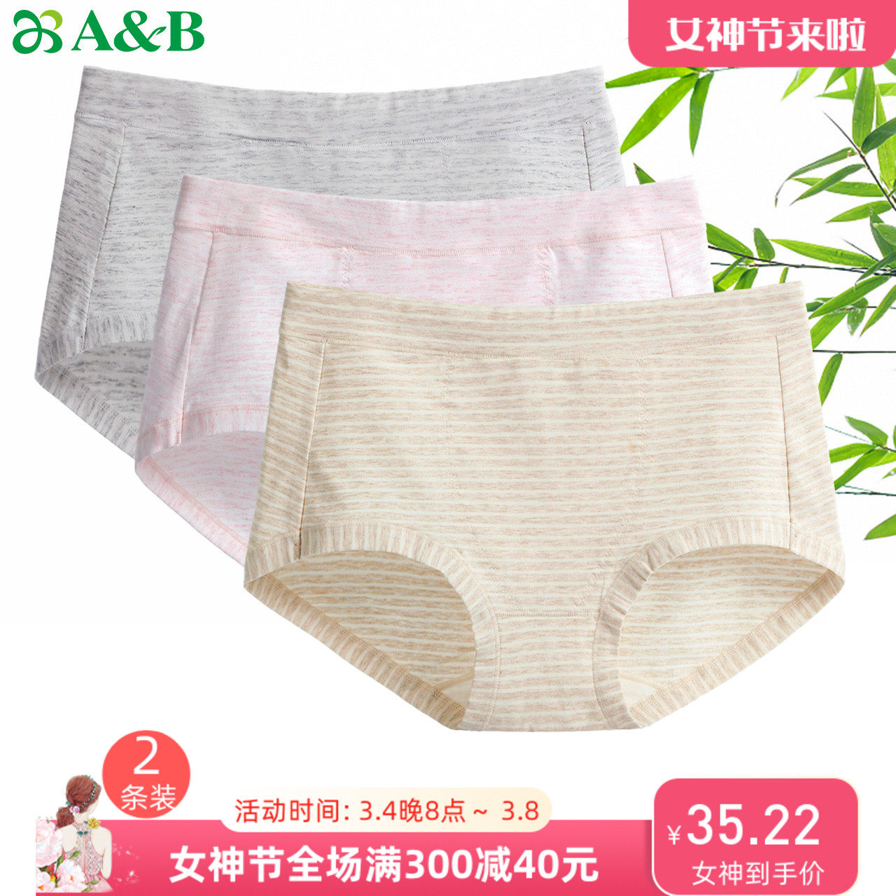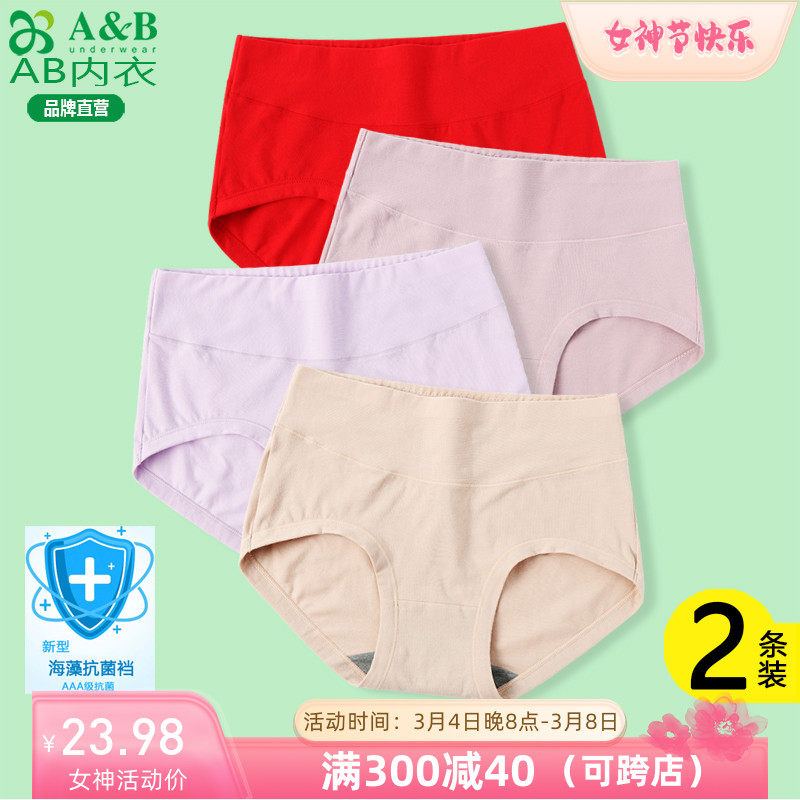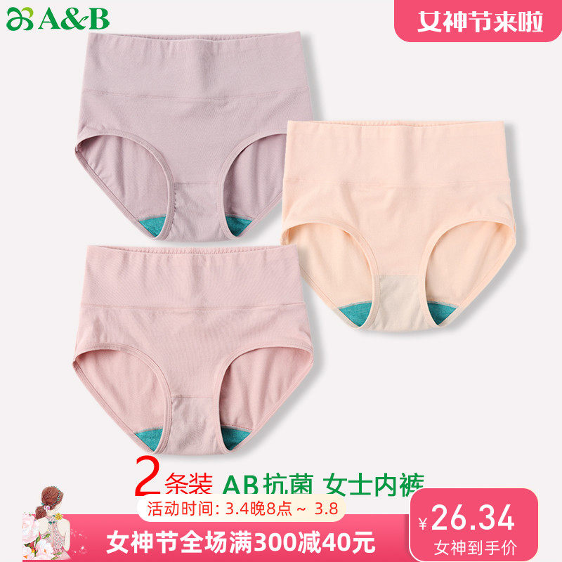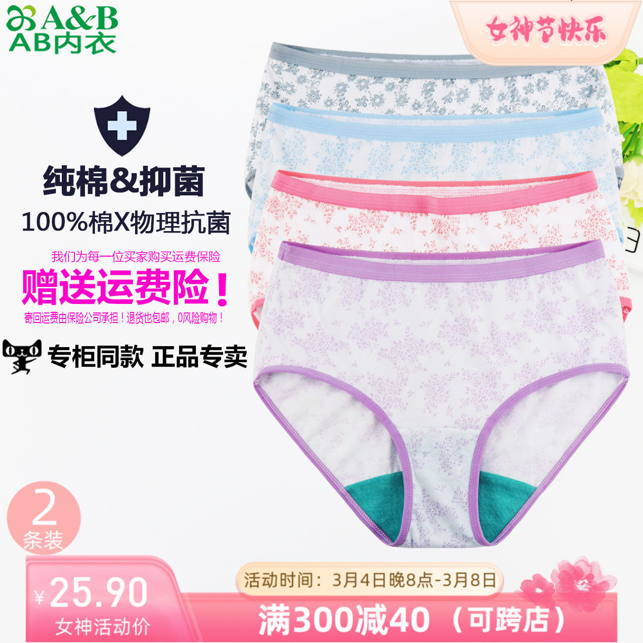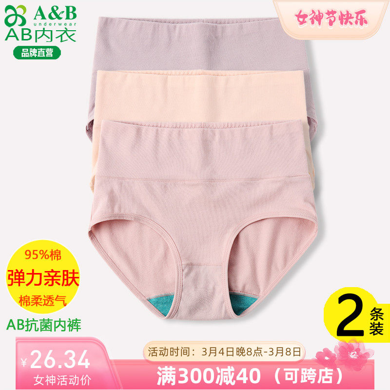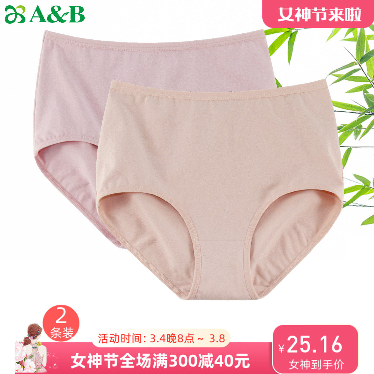 ab内衣【2条装】女士平脚内裤弹力棉抗菌中高腰女生平角短裤1128