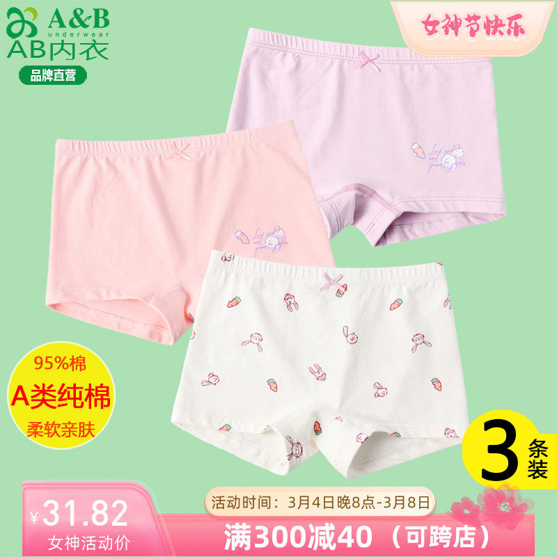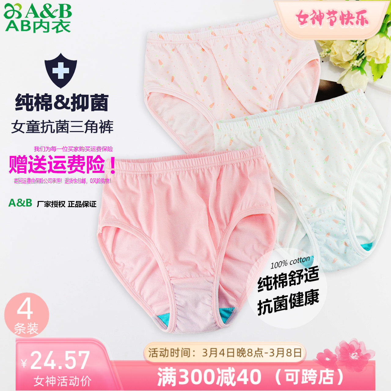 4条AB内裤儿童纯棉抗菌青少年学生三角裤男女童小孩高腰全棉短裤