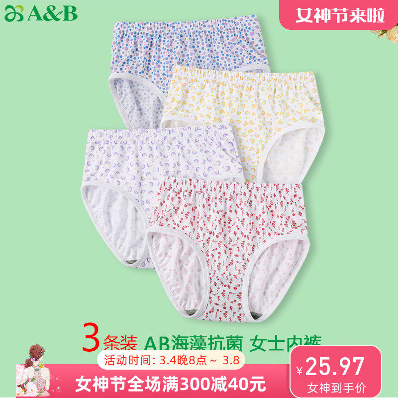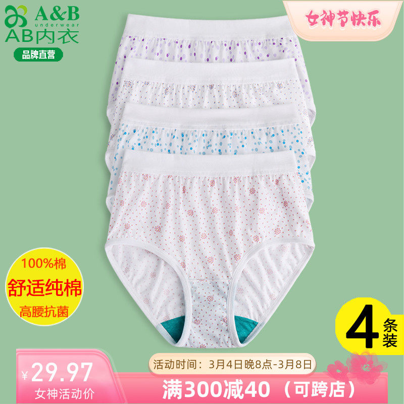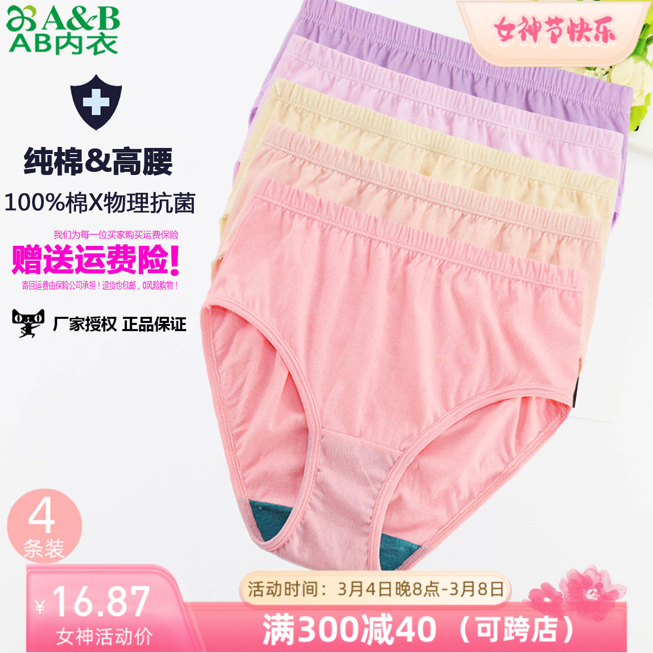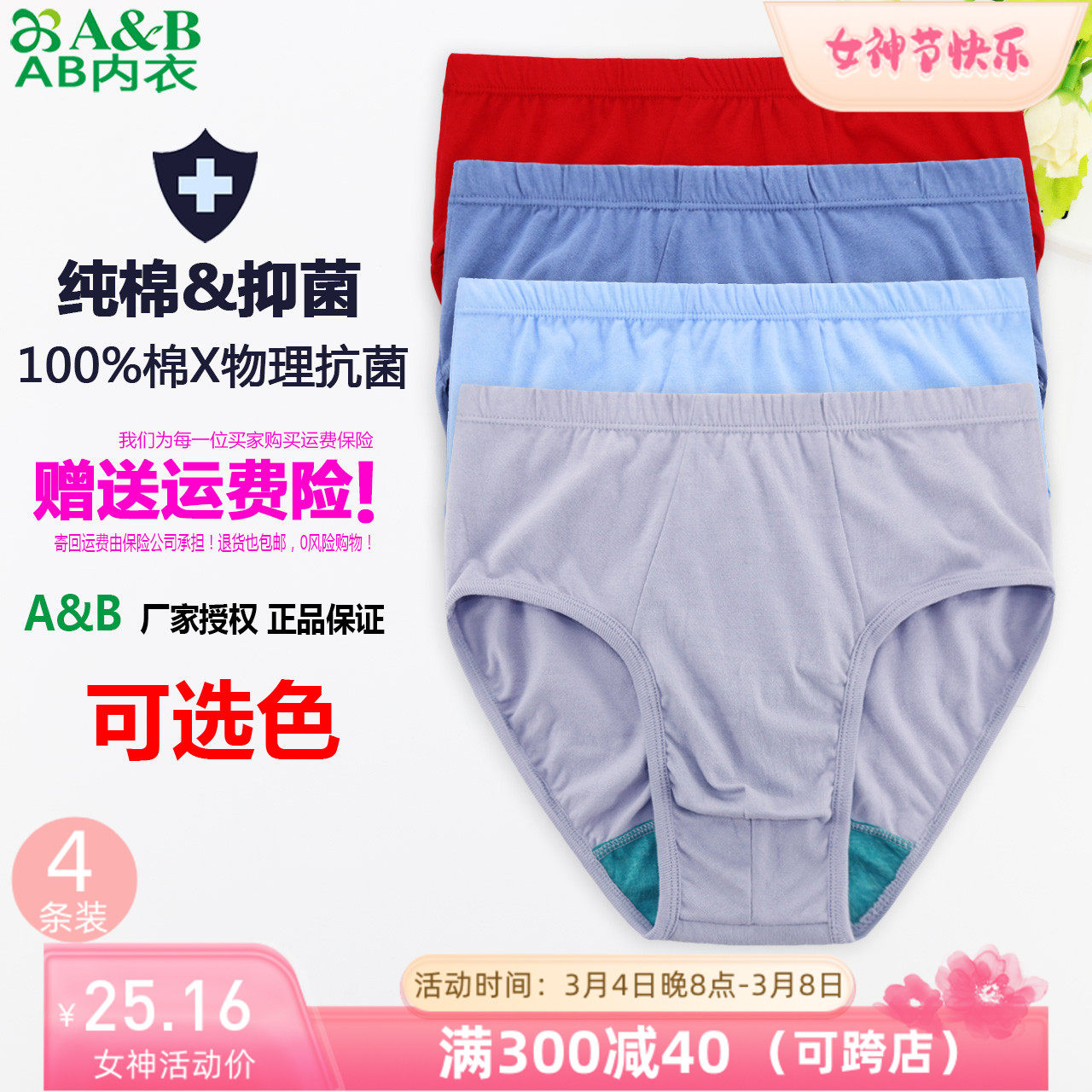 ab女内裤纯棉抗菌舒服中老年妈妈全棉短裤宽松大码高腰三角裤2822