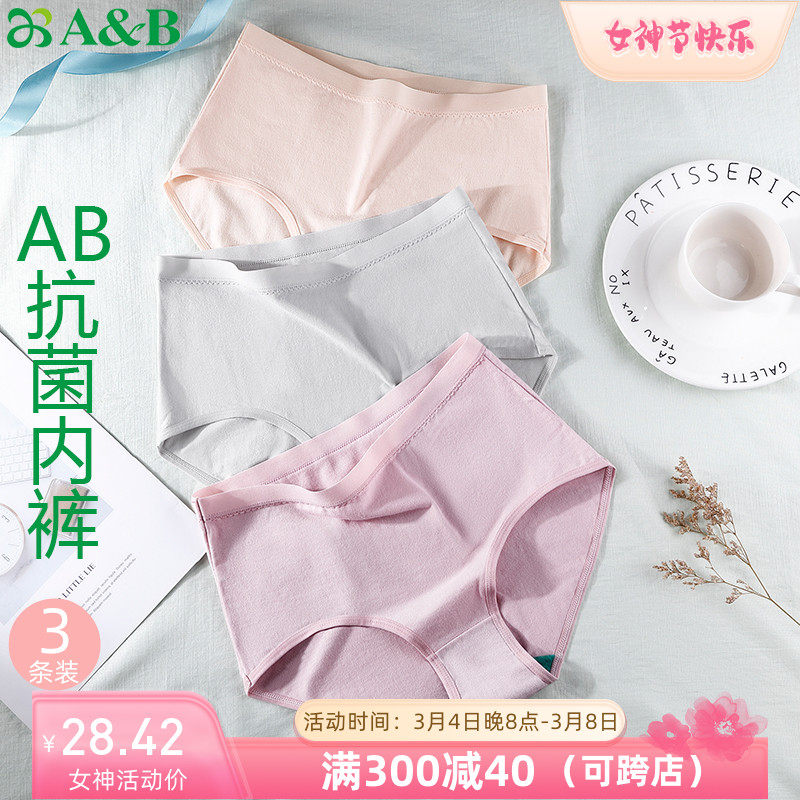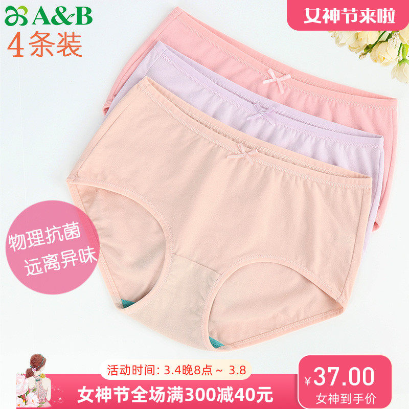 ab女士内裤夏季薄款女纯棉抗菌小平脚裤头少女生中腰大码青年短裤
