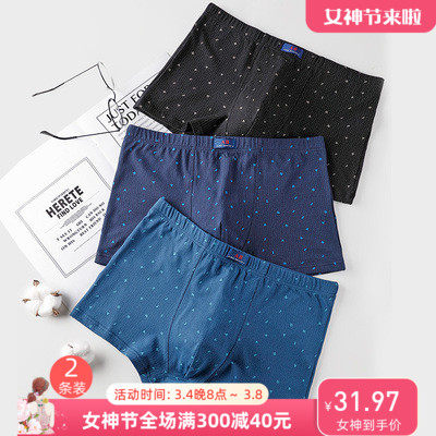 ab内裤男平角裤弹力棉抗菌裤青年贴身印花潮中腰大码四角短裤B323