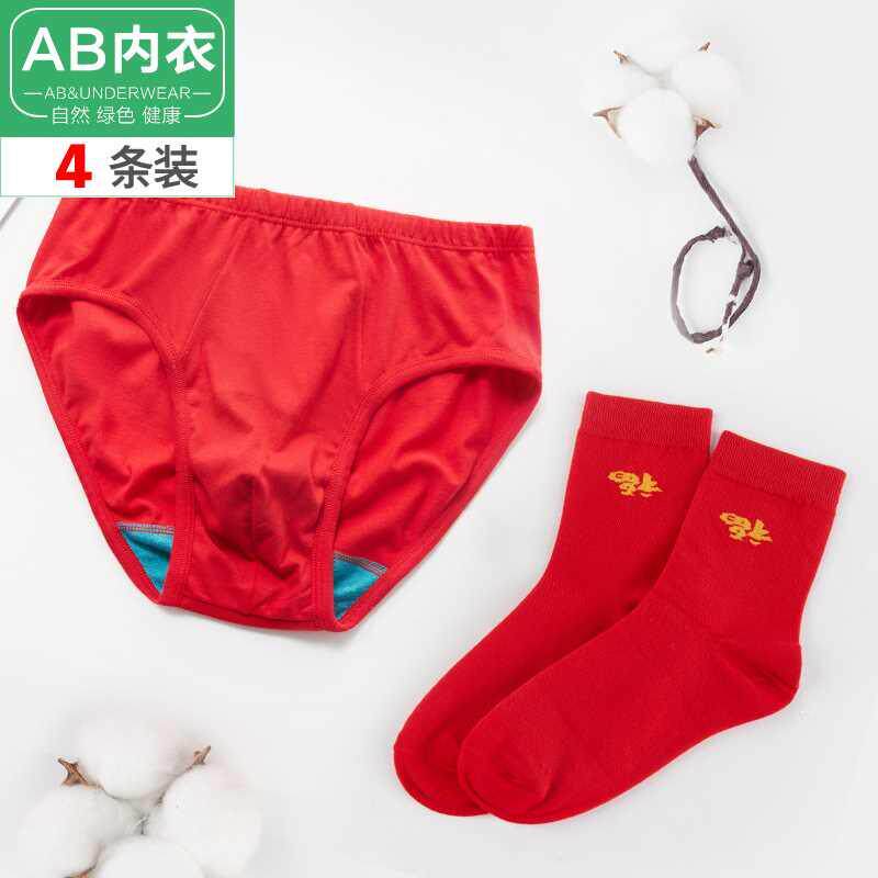 AB内衣男士纯棉内裤宽松大码中老年高腰三角裤大红本命年短裤0922
