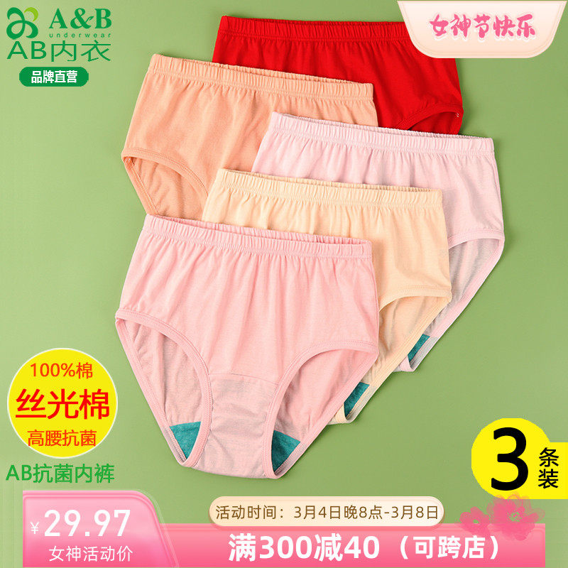 ab内裤女士纯棉高腰抗菌三角裤中老年舒适丝光棉宽松大码短裤头