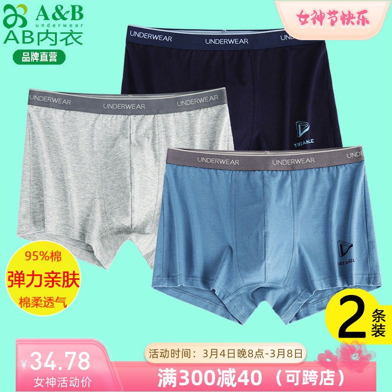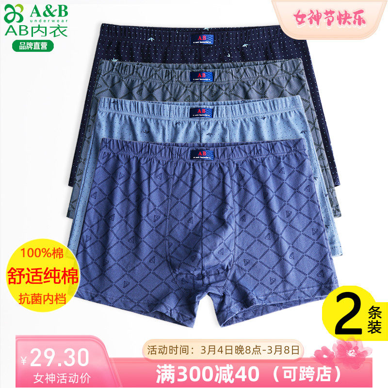 ab内裤男纯棉抗菌平角裤100%棉中腰透气大码四角短裤裤衩裤头Y561
