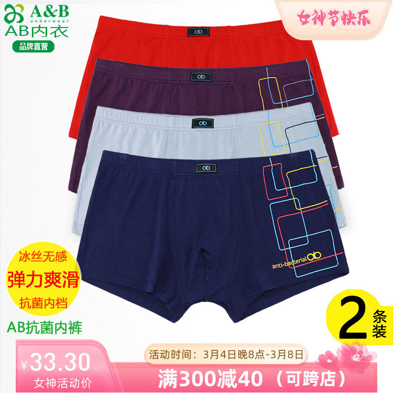ab男士抗菌内裤粘纤简约印花夏季薄款短裤中腰商务休闲平角裤Y209