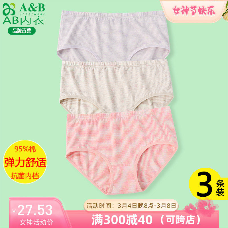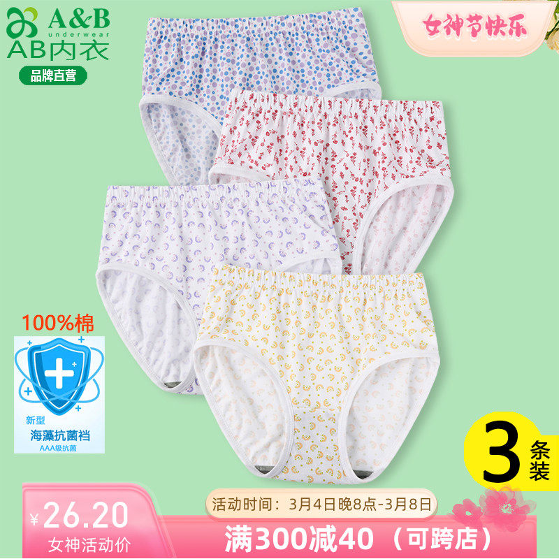 ab内裤【3条装】弹力棉抗菌女士三角裤弹力舒适低腰少女短裤Y318