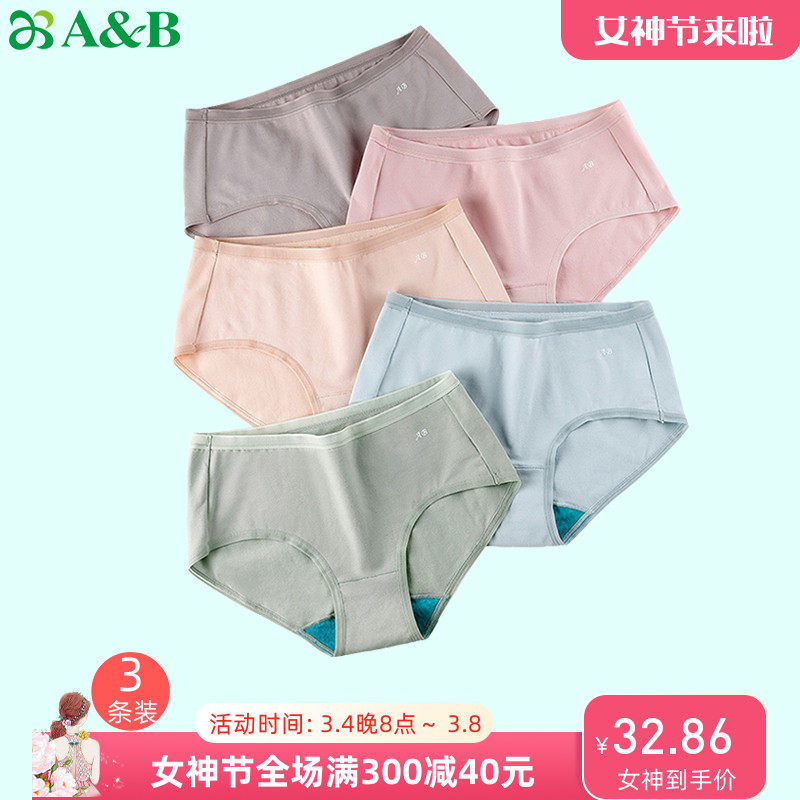 AB内裤女弹力棉中高腰抗菌内裤【3条】纯色青年贴身女士短裤1108