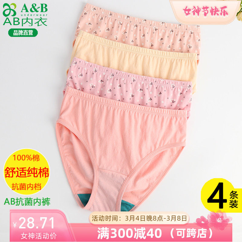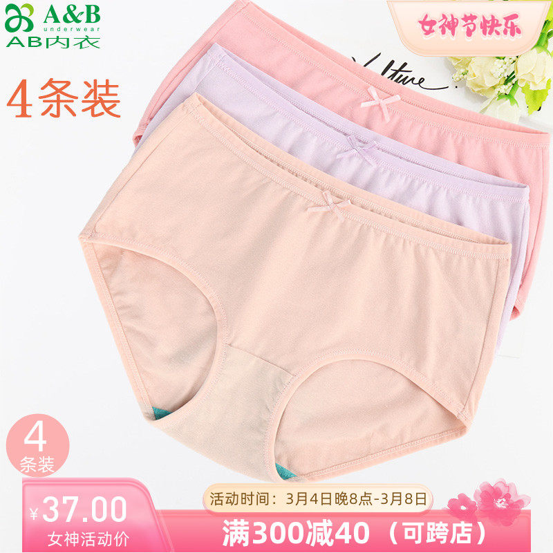 ab内裤女纯棉透气中腰大码胖mm女士三角全棉短裤内衣L640