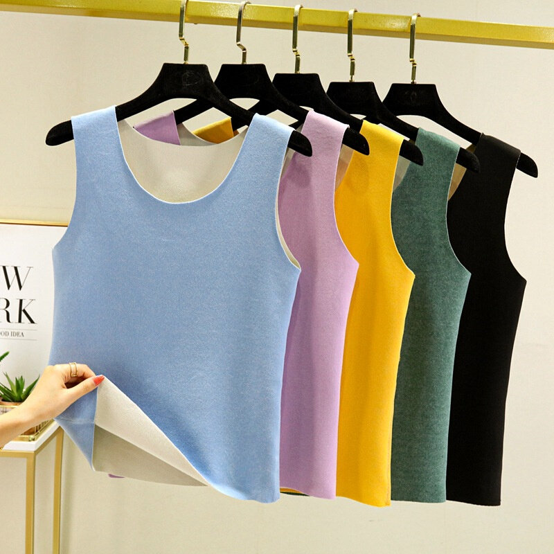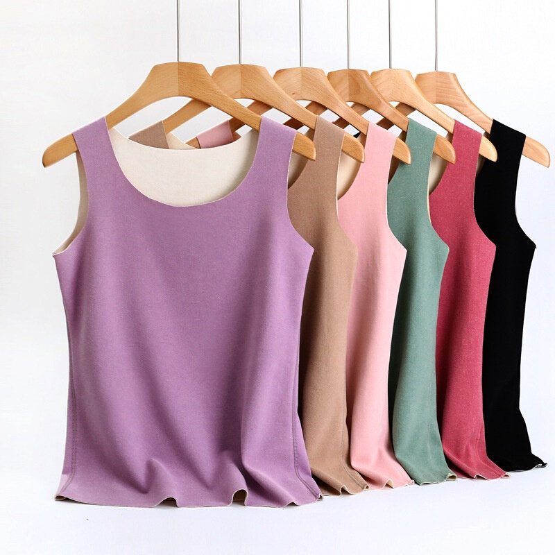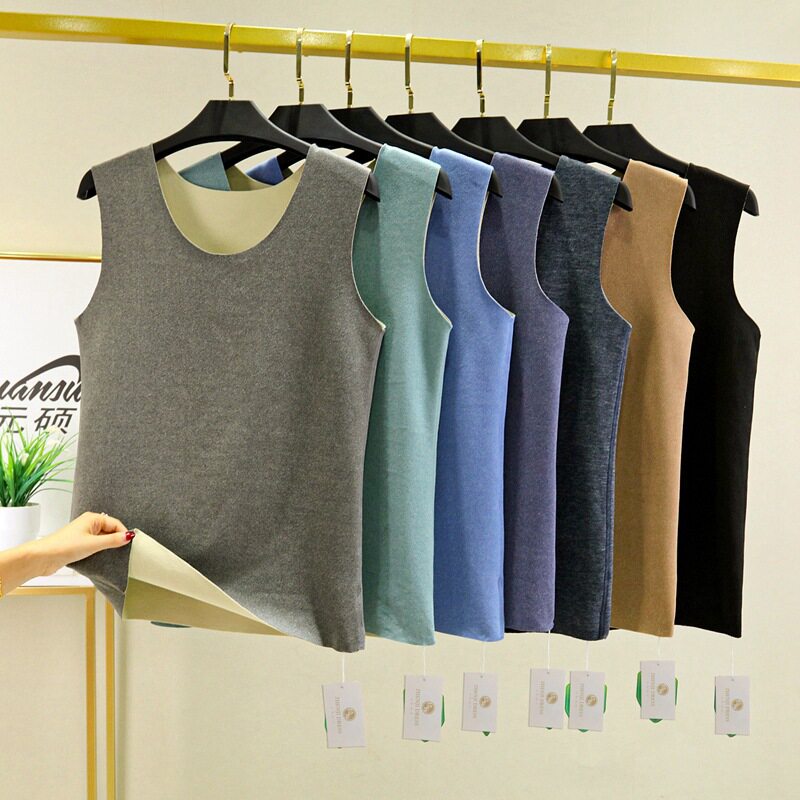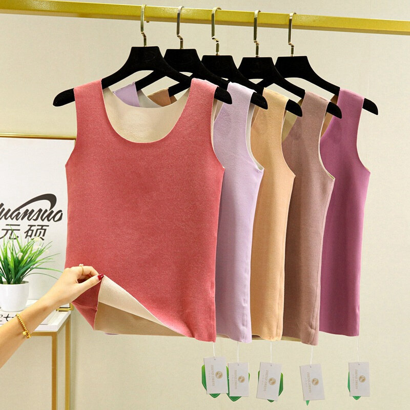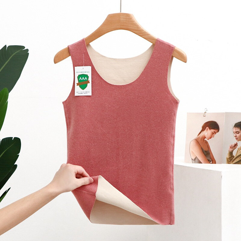 AB面德绒保暖背心女带胸加厚内穿修身无痕打底衫自发热保暖内衣
