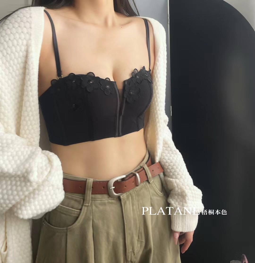 ab内衣蕾丝美背文胸无钢圈吊带裹胸罩聚拢背心式运动内衣C462
