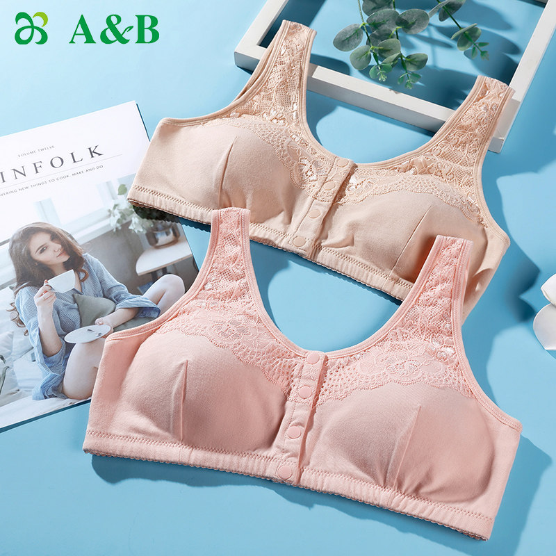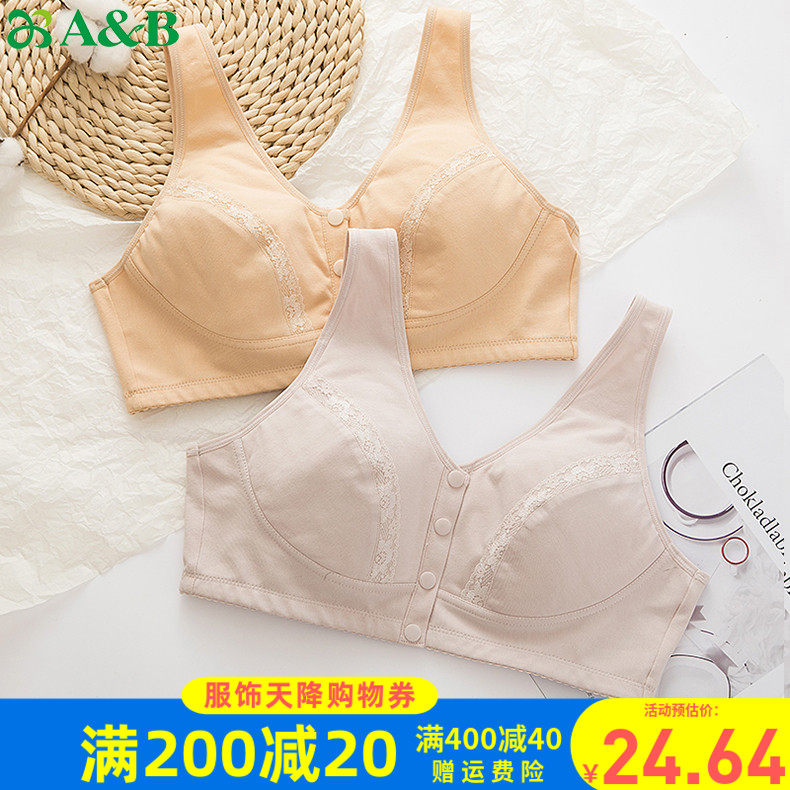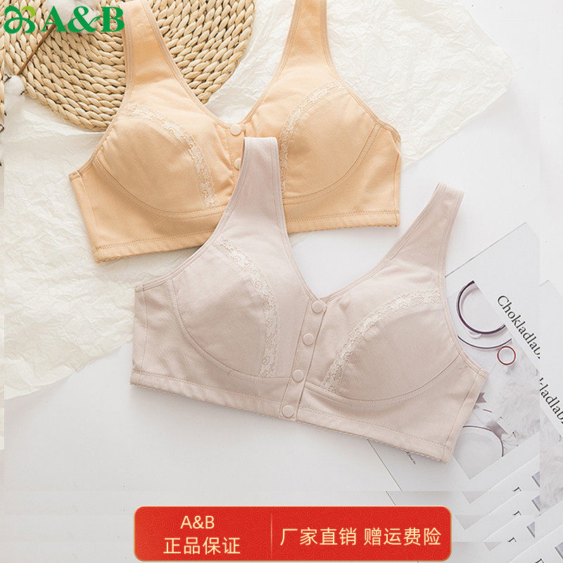 AB内衣中老年无钢圈胸罩棉质弹力舒适背心式前扣妈妈文胸C436