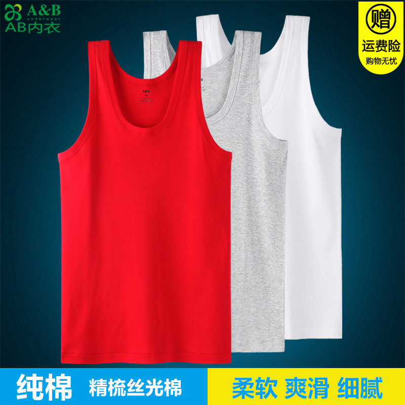 AB内衣背心男士夏季薄丝光纯棉冰丝大红弹力贴身打底运动背心6041