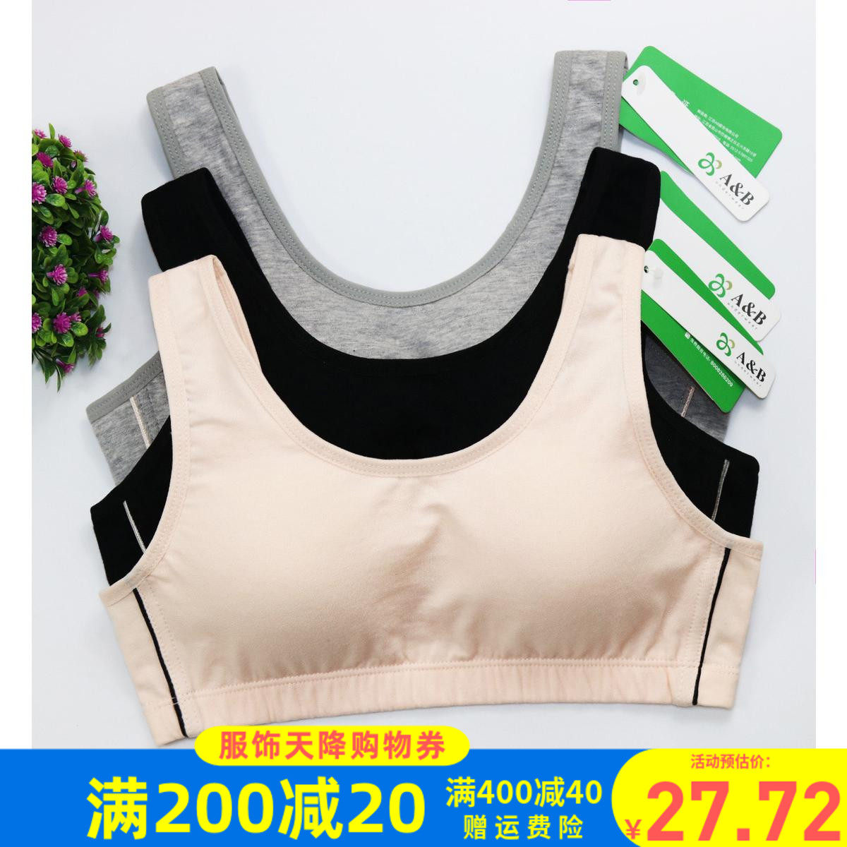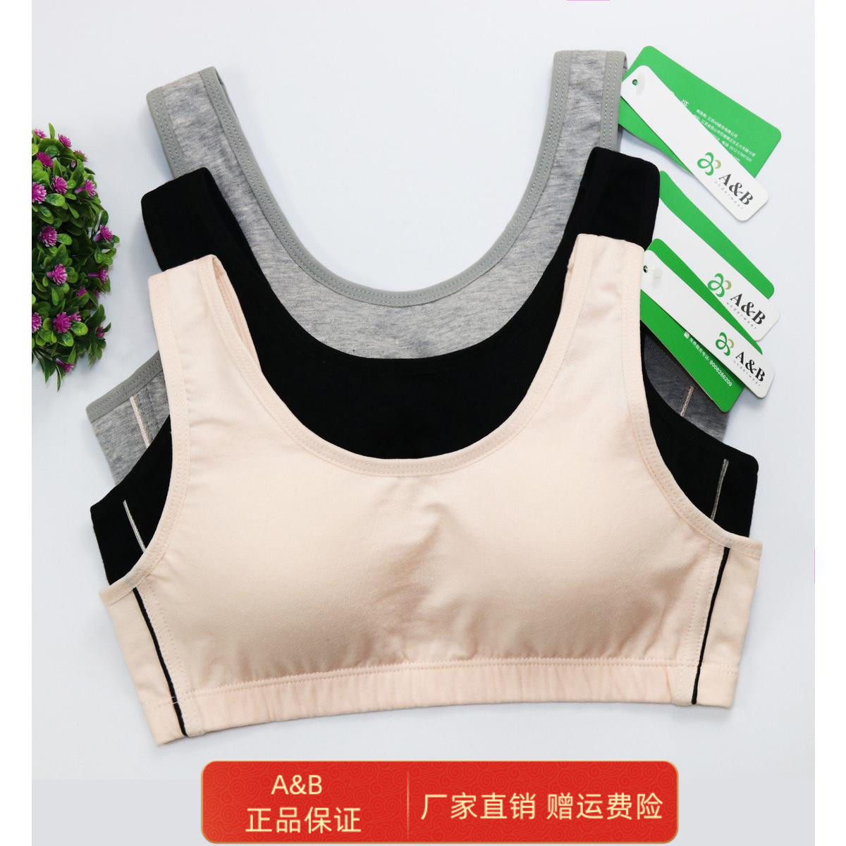 AB内衣运动文胸瑜伽背心纯棉透气舒适透气少女青少年发育期文胸