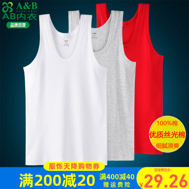 AB内衣专柜正品男士纯棉汗布休闲背心精梳棉白色打底背心2件L615