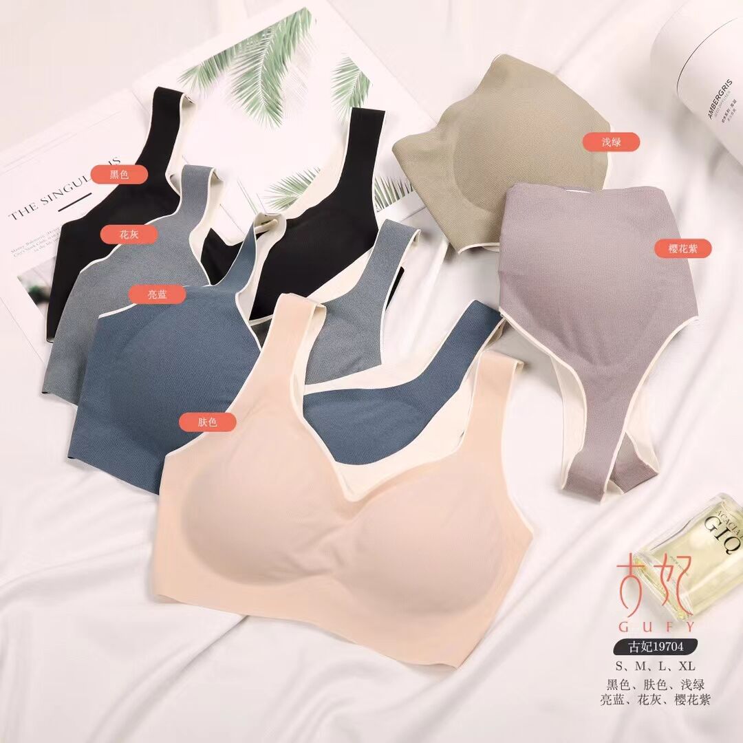 古妃19704无痕乳胶加厚杯女运动文胸一片背心式小胸聚拢内衣AB杯