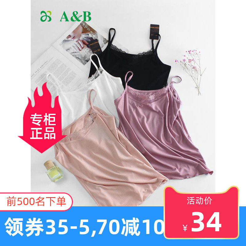 AB内衣女士吊带薄款春夏螺纹莫代尔蕾丝花边百搭打底背心女吊带衫