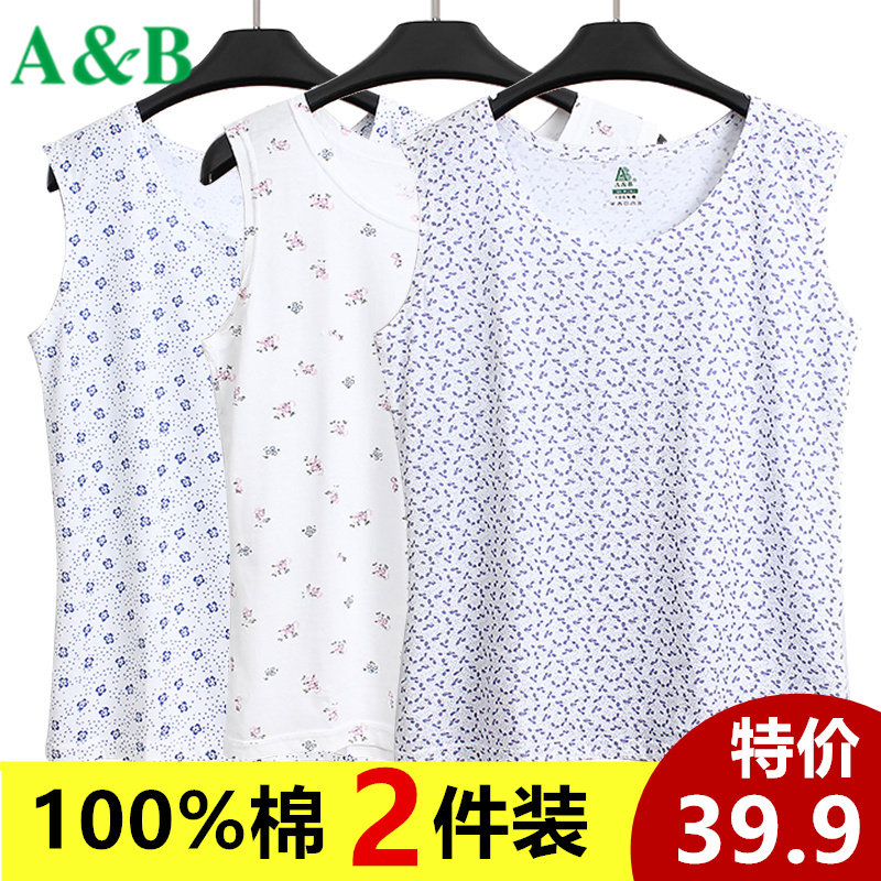 AB内衣女纯棉中老年人背心吊带夏天宽松大码汗衫透气文胸 2件S906