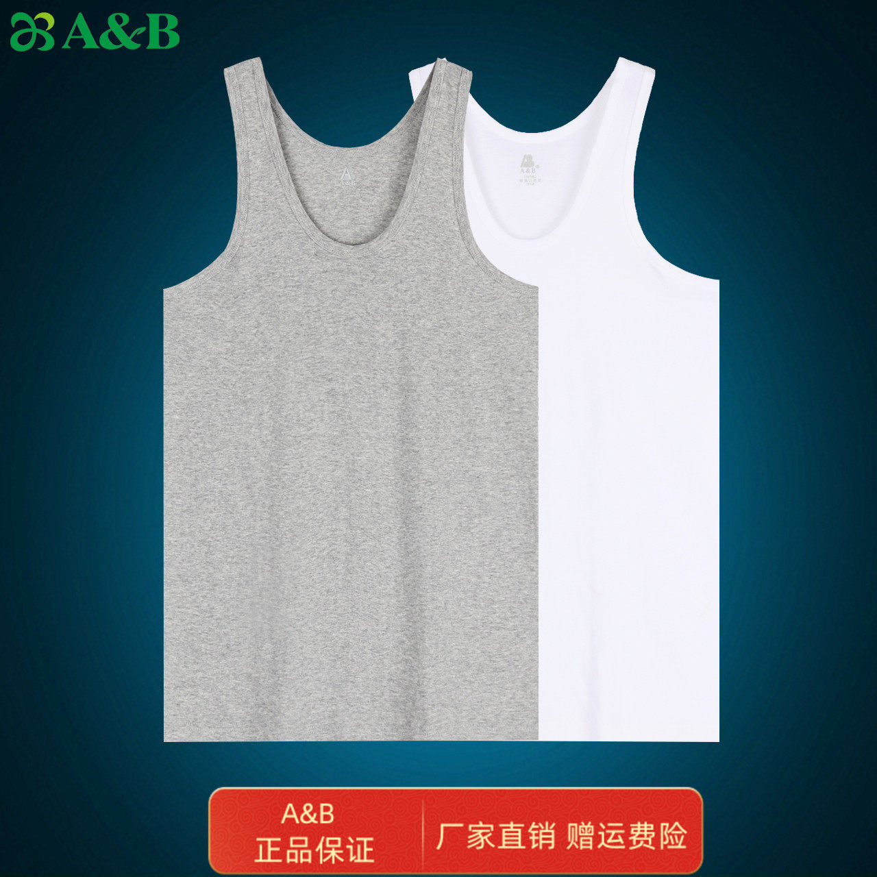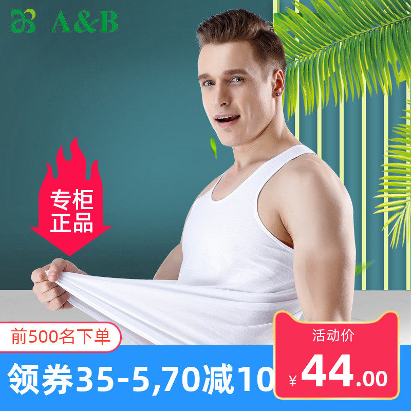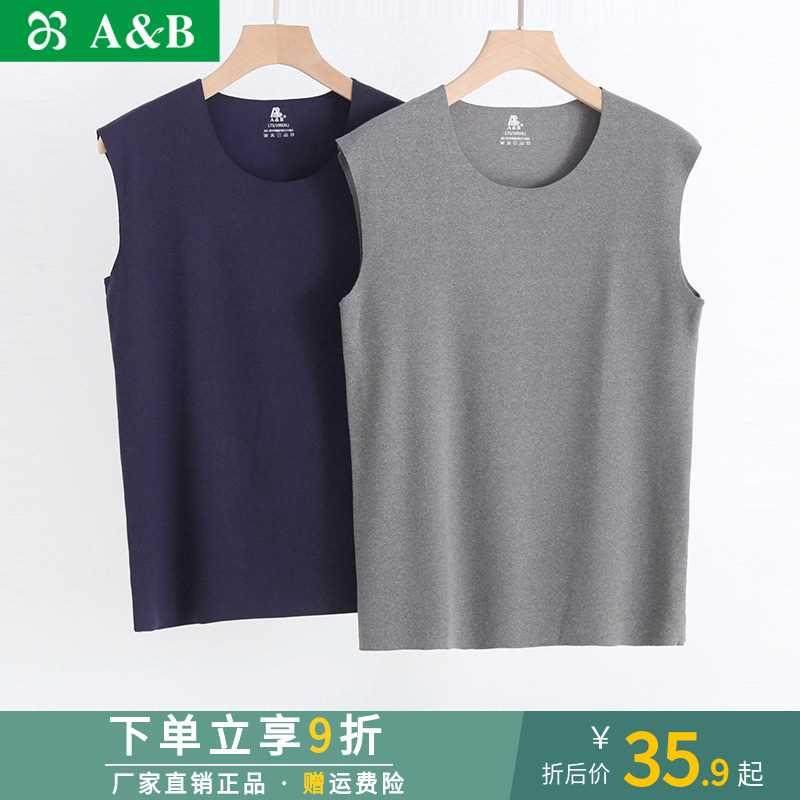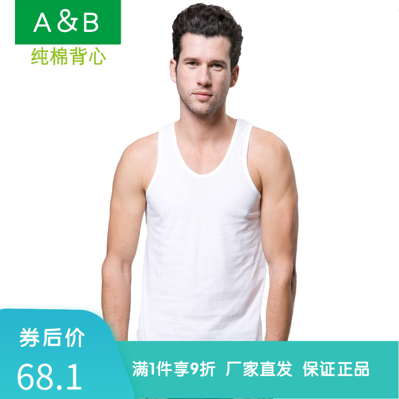 AB内衣 正品纯棉夏薄男t士背心汗衫吸汗透气中老年打底无袖家居服