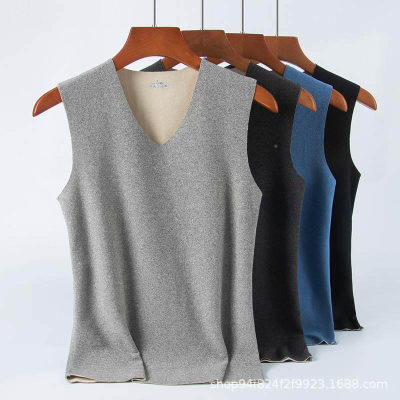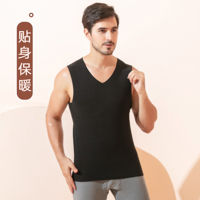 秋冬无痕保暖背心男士内穿磨毛加绒加厚AB双面德绒自发热打底内衣