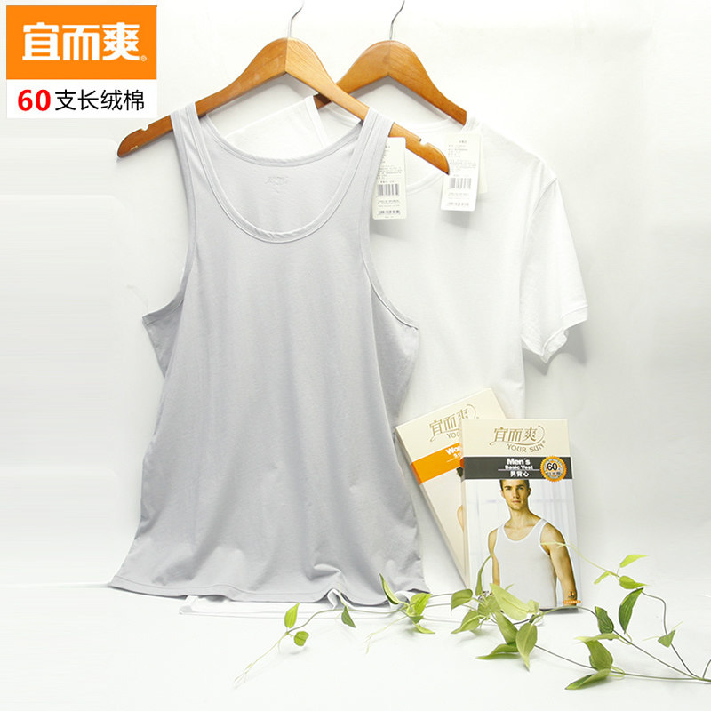 2件装宜而爽夏60支男纯棉背心薄款女舒适透气丝光棉宽松大码正品