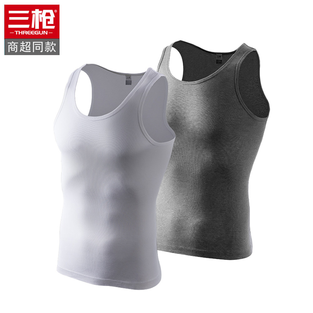 三枪2件装男士背心无袖纯色新疆弹力棉运动透气上衣圆领打底内衣