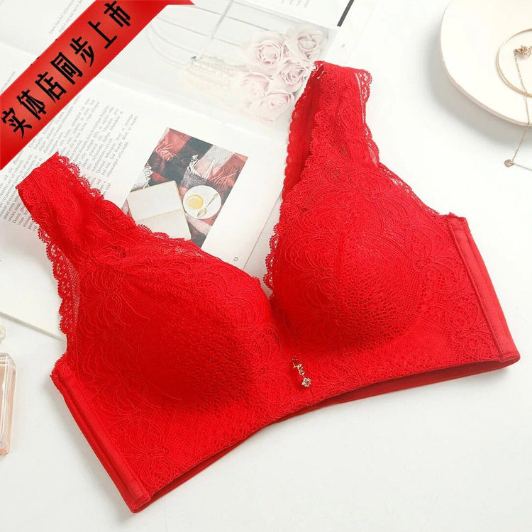 爱黛魔力体雕无钢圈背心式文胸AB厚C薄红色本命年聚拢调整型内衣