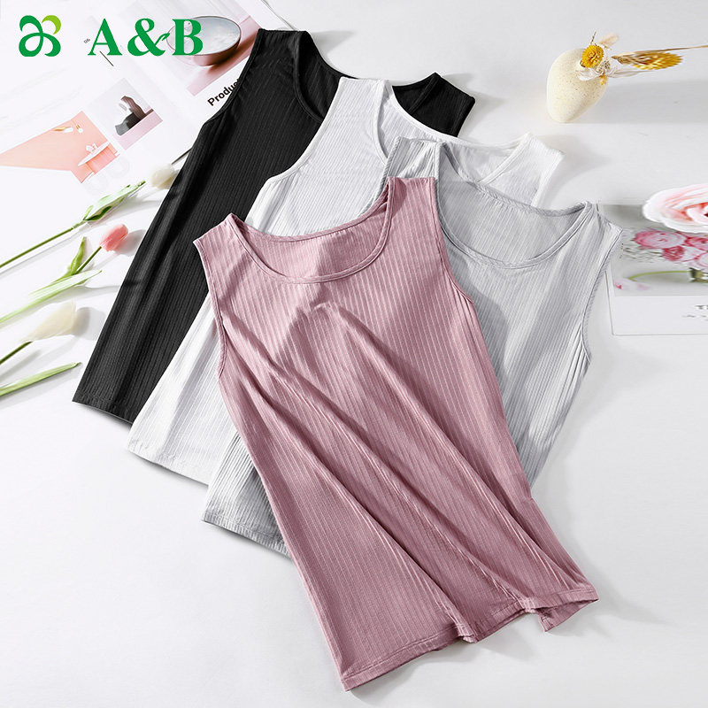 ab内衣吊带背心女螺纹坑条宽松大码内搭打底内衣居家外穿薄6555