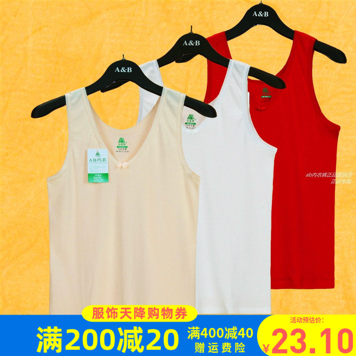 AB内衣专柜正品 细针弹力镶花女款无袖纯棉打底背心 AB 8191