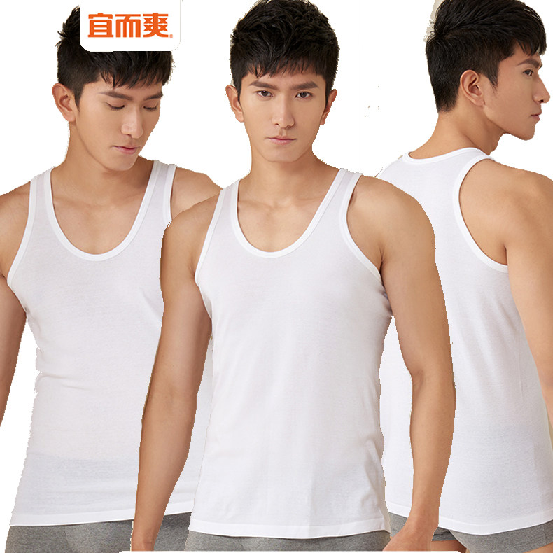3件装宜而爽新疆棉纯棉夏季轻薄弹力运动休闲打底全棉罗纹背心男