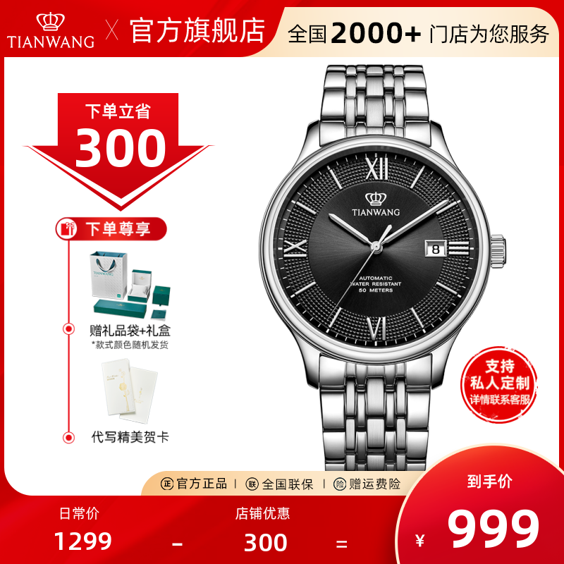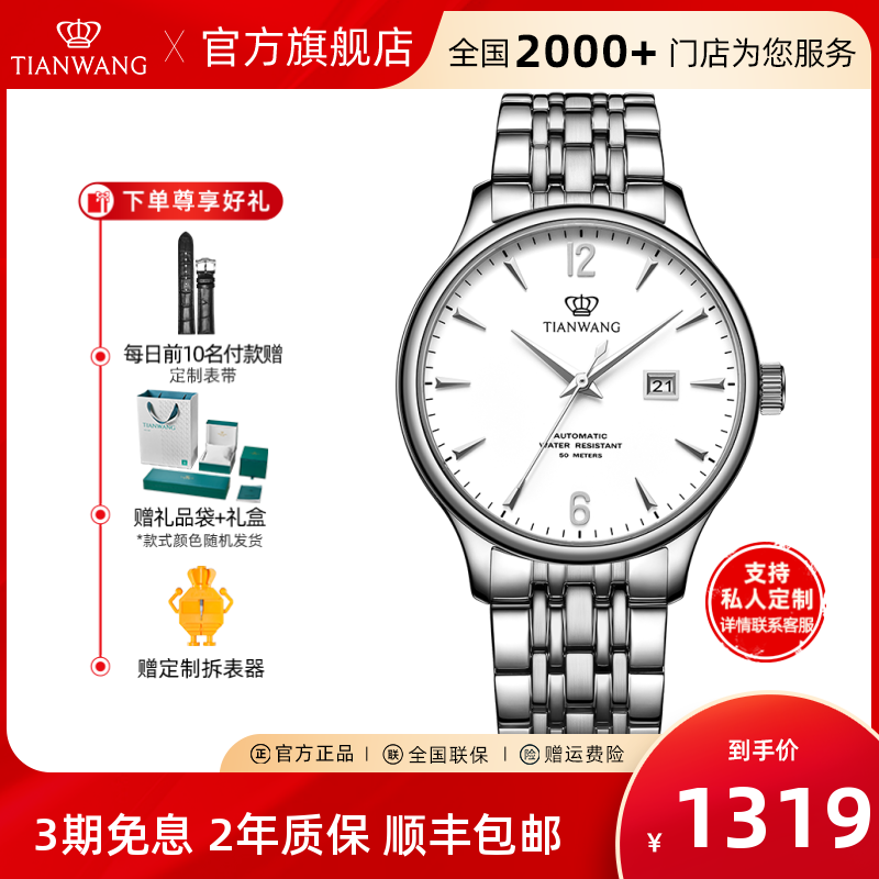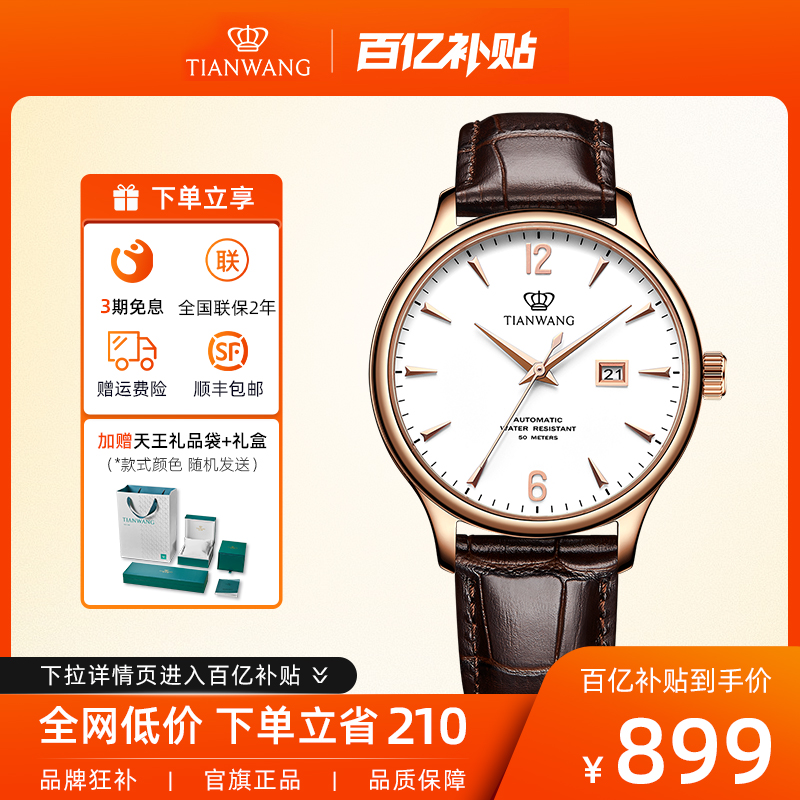 天王表昆仑系列经典款休闲皮带5844情侣机械手表男女 新年礼物