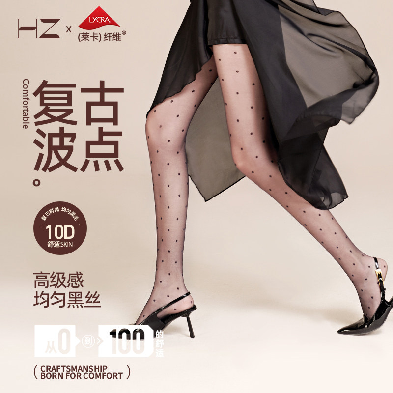 HZ黑色波点丝袜防勾丝10D高透黑丝袜白色波点丝袜超薄款连裤袜子