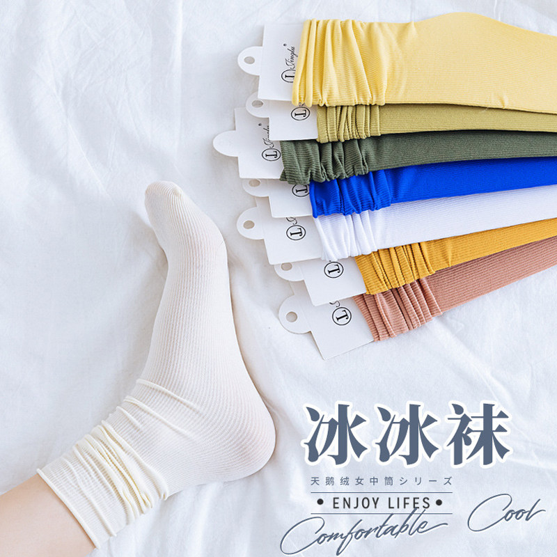 堆堆袜女薄款冰冰袜纯色袜子女中筒袜夏天白色长袜冰丝袜长筒夏季