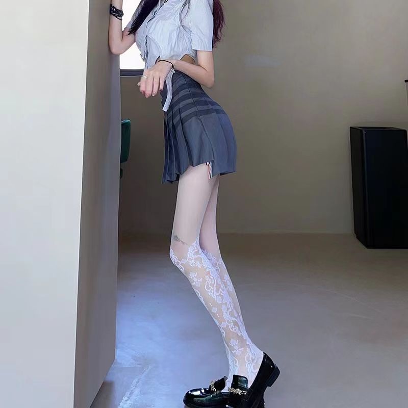 性感白色复古花纹丝袜女薄款时尚小腿提花连裤打底袜蕾丝纯欲袜子