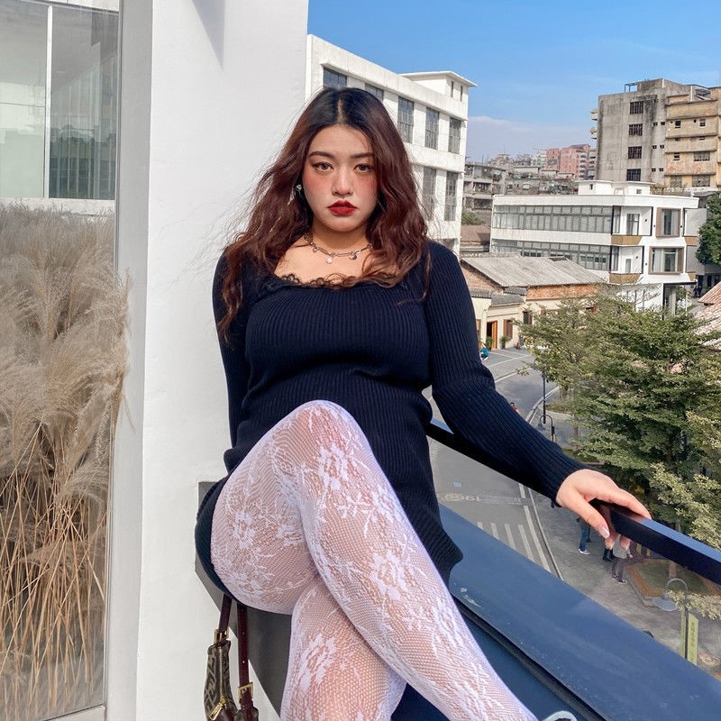 开挡丝袜性感网红纯欲黑白色蕾丝花边长中筒过膝吊带袜女手撕网袜