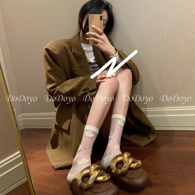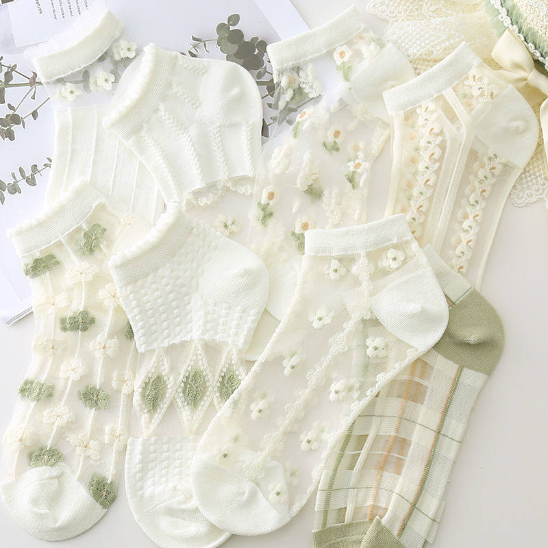DODOYO 白色花朵透明袜女日系网红INS潮中筒夏季超薄水晶玻璃丝袜