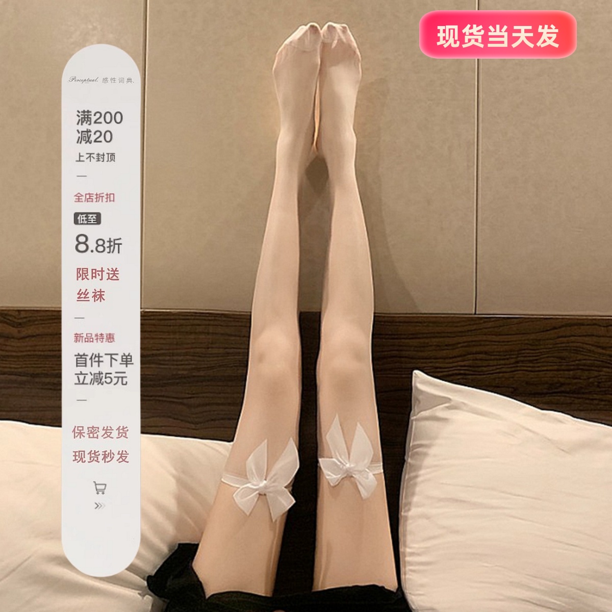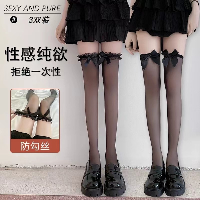 中长筒性感袜子蝴蝶结黑丝袜女黑色潮ins可爱白丝萝莉超薄款夏季