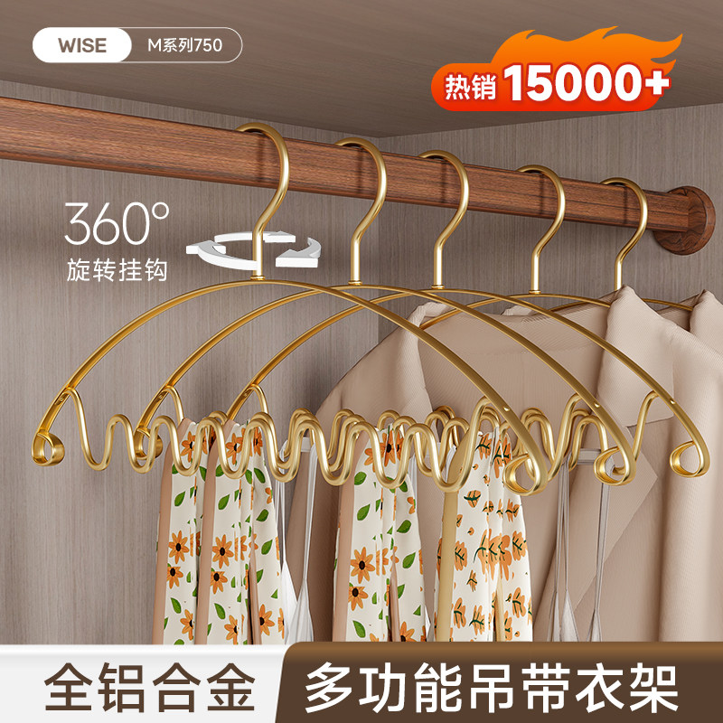 木质吊带衣架多功能家用挂衣领带皮带内衣实木挂钩8勾波浪衣架子
