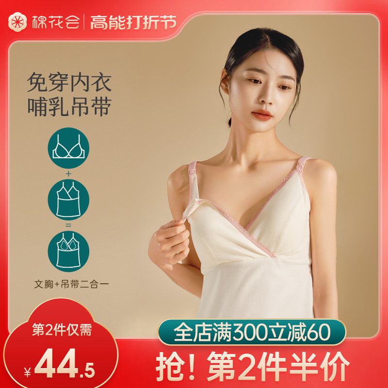 棉花会哺乳背心吊带纯棉上衣孕妇文胸免穿内衣外出产后喂奶防走光
