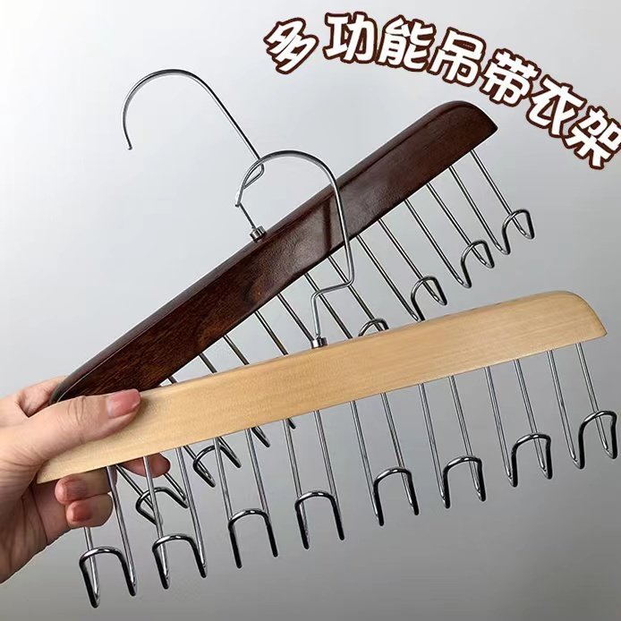 波浪衣架木质吊带衣架多功能皮带收纳架领带内衣背心实木收纳神器