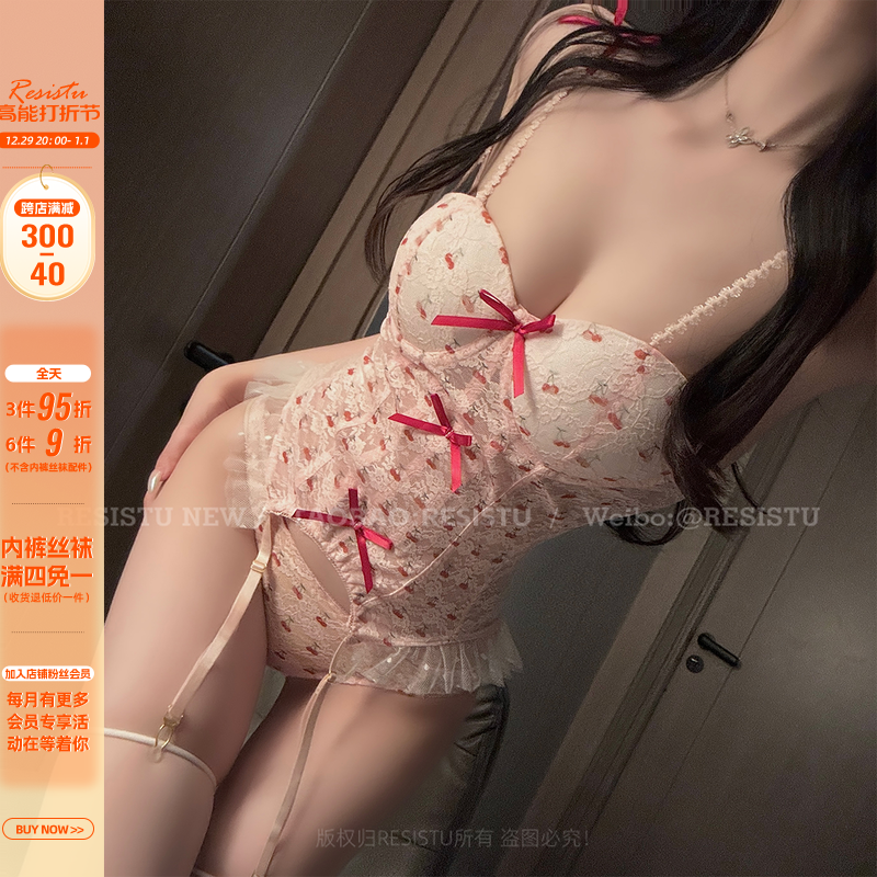 绫-新品「束」云缎™ 红黑绑手一体内裤吊带袜性感大蝴蝶结丝袜