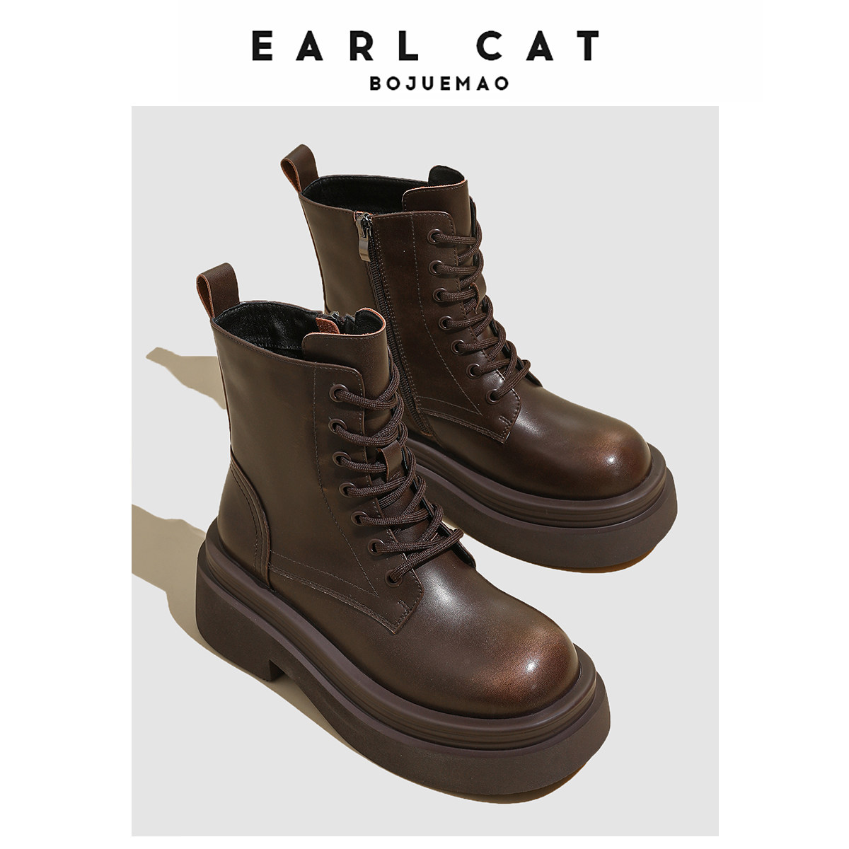 伯爵猫厚底真皮马丁靴女靴英伦风2023秋冬新款加绒百搭侧拉链短靴