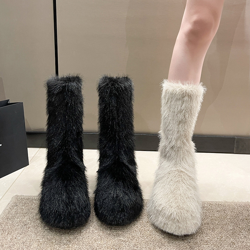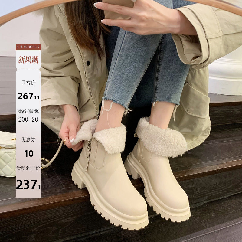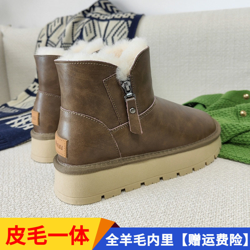 厚底雪地靴女皮毛一体短筒拉链防水防滑加厚加绒保暖2023冬季新款