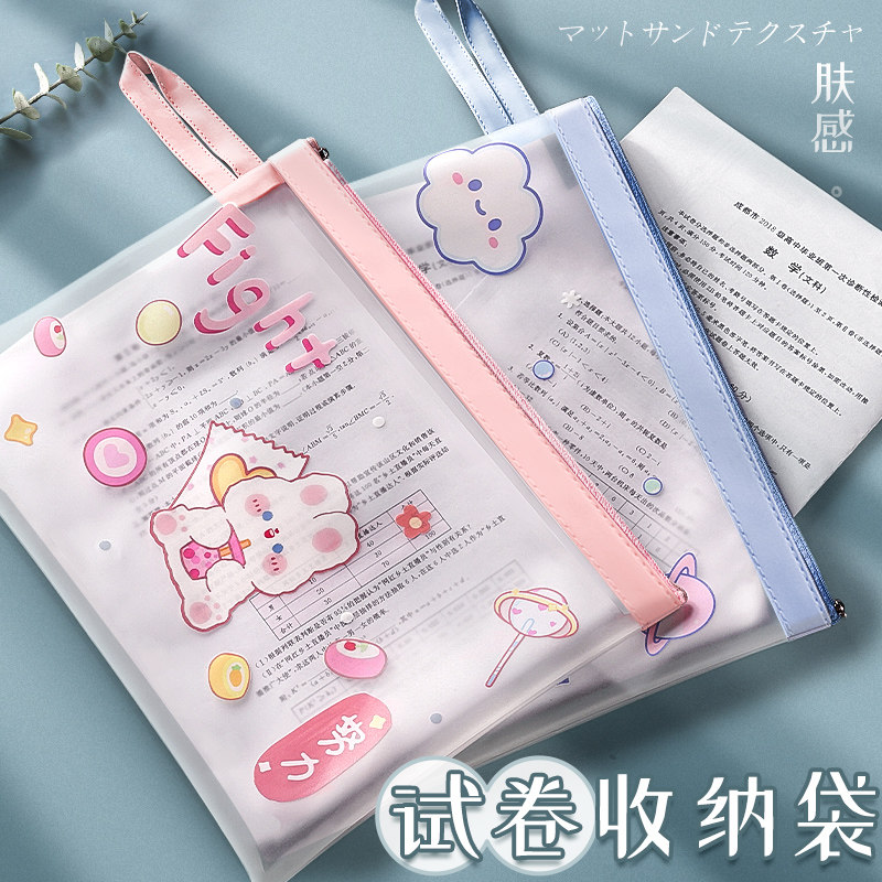 试卷收纳袋拉链式加厚文件袋透明大容量防水a4文件资料袋学生手提袋小学生考试用书本收纳袋子学习袋男女孩